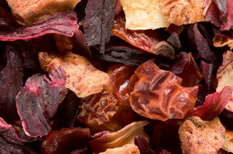 Fleurs d'hibiscus, cynorrhodon, morceaux de pomme, écorces d'orange, arôme cerise