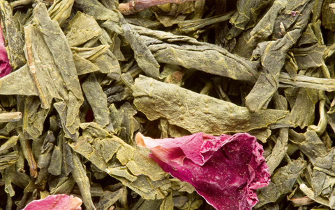 Thé vert (Camellia sinensis), pétales de fleur, arôme cerise