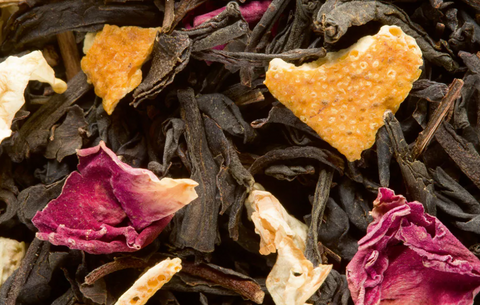 Thé noir (Camellia sinensis), arômes (abricot, figue, pitanga, bergamote, lotus) et huile essentielle de citron, écorces d'orange, pétales de fleur